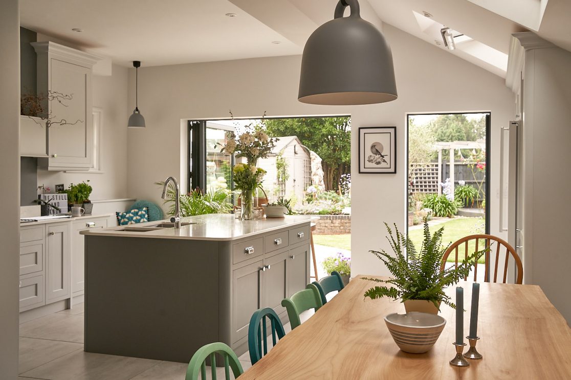 The addition of glazed bi-fold doors provides a strong connection with the rear garden with new paving enabling a seamless transition from the kitchen to the garden.