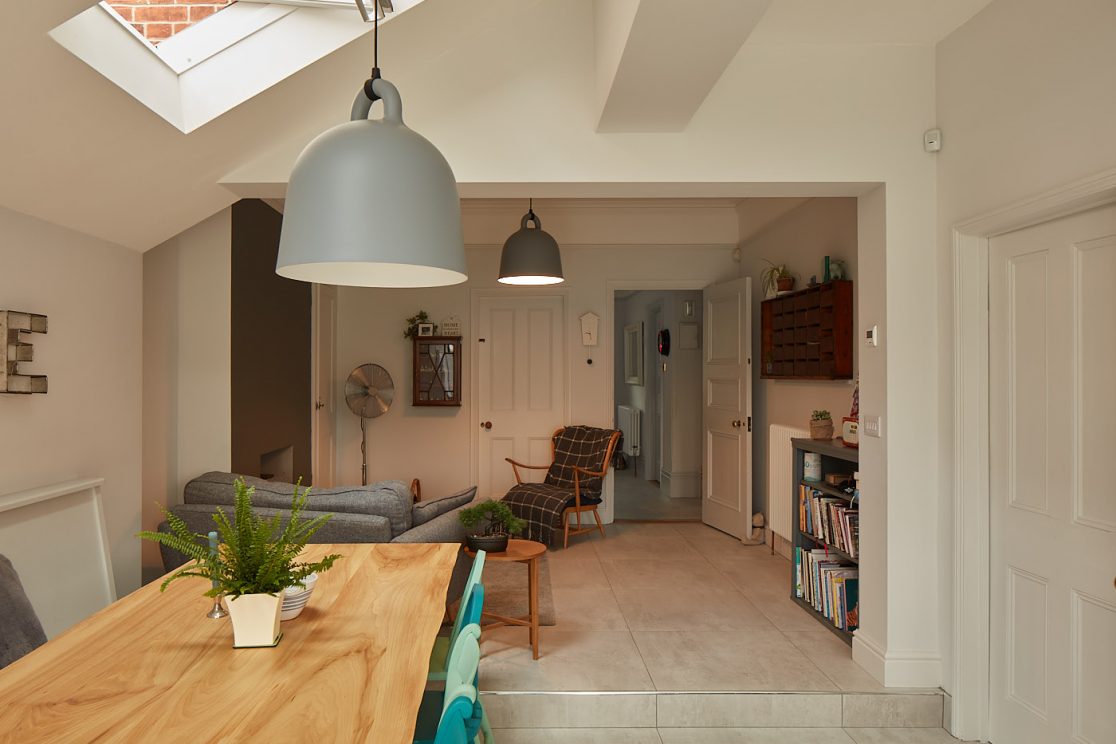 10 years in the planning, this project transformed a Victorian villa in Ipswich into a modern family home. The introduction of a lean-to extension enabled the incorporation of the existing dining room and kitchen to create a single, large living cooking and dining space.